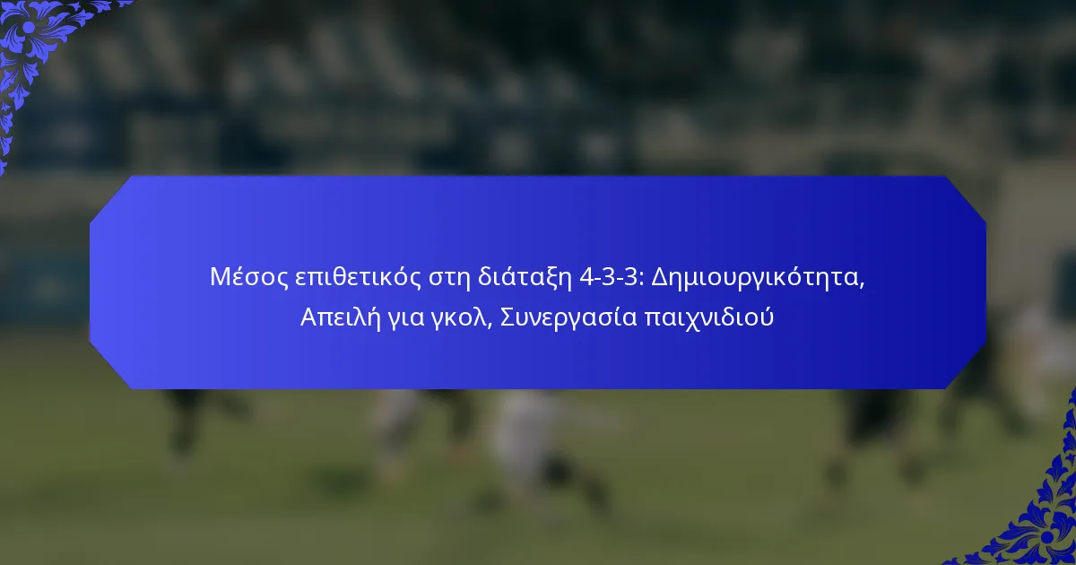 Ένας δημιουργικός παίκτης στη διάταξη 4-3-3 παίζει κρίσιμο ρόλο στη διευκόλυνση της ομαδικής συνεργασίας και στην ενίσχυση των επιθετικών στρατηγικών. Αυτός ο παίκτης χρησιμοποιεί την ορατότητα, την ικανότητα πάσας και την τακτική νοημοσύνη για να συνδεθεί με τους συμπαίκτες, οργανώνοντας ενέργειες που οδηγούν σε ευκαιρίες για γκολ.